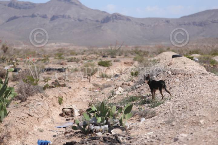 CIUDAD JUÁREZ, CHIHUAHUA, 20ABRIL2026.- La mañana de este lunes fue localizado un cuerpo en estado de descomposición, envuelto en una cobija, en el cruce de la calle De los Patos y la carretera, en la colonia Kilómetro 29. Vecinos alertaron a las autoridades tras observar a varios perros devorando el cadáver. Con este hallazgo, suman 50 homicidios en lo que va del mes en Ciudad Juárez. FOTO: MANUEL SÁNCHEZ/CUARTOSCURO.COM
