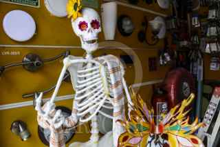 CIUDAD DE MÉXICO, 21ABRIL2026.- Calaca en un negocio de la colonia Pedregal de Santo Domingo, en Coyoacán. FOTO: VICTORIA VALTIERRA/CUARTOSCURO.COM