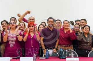 CAMPECHE, CAMPECHE, 22ABRIL2026.- La gobernadora de Campeche, Layda Sansores San Román presentó al alcalde de Ciudad del Carmen, Pablo Gutiérrez Lazarus, como Coordinador de la Cuarta Transformación en Campeche, en un acuerdo de unidad que busca fortalecer la cohesión política rumbo a los próximos procesos electorales. FOTO: MICHAEL BALAM/CUARTOSCURO.COM