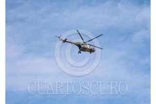 CULIACÁN, SINALOA, 22ABRIL2026.- Se observó actividad de helicópteros de la Marina en la Novena Zona Militar y el despliegue de aeronaves Black Hawks y MI-17, luego de que trascendió la presunta captura de Aureliano Guzmán, conocido como “El Guano”, en un operativo en Durango. Sin embargo, en conferencia de prensa encabezada por Omar García Harfuch, secretario de Seguridad y Protección Ciudadana, junto con la Fiscalía General de la República, se aclaró que durante el operativo realizado en Badiraguato, Sinaloa, y en zonas de Durango hubo detenidos, pero no se confirmó el arresto de Guzmán. “Se están desarrollando actividades operativas desde la mañana en Sinaloa, específicamente en Badiraguato y en los alrededores”, puntualizó García Harfuch. FOTO: JOSÉ BETANZOS ZÁRATE/CUARTOSCURO.COM