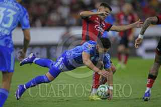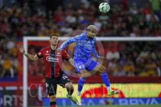GUADALAJARA, JALISCO. 22ABRIL2026- Gustavo Ferrereis y Sergio Hernández jugadores de Atlas, disputan un balón con el contrario de Tigres Juan Bruneta, esto en partido correspondiente a la jornada 16 del Torneo Clausura 2026 de la Liga MX, en donde se enfrentan los equipos de Atlas vs Tigres y en juego que se llevo a cabo en el Estadio Jalisco, el marcador al final es de 0-0. FOTO: FERNANDO CARRANZA GARCIA / CUARTOSCURO.COM