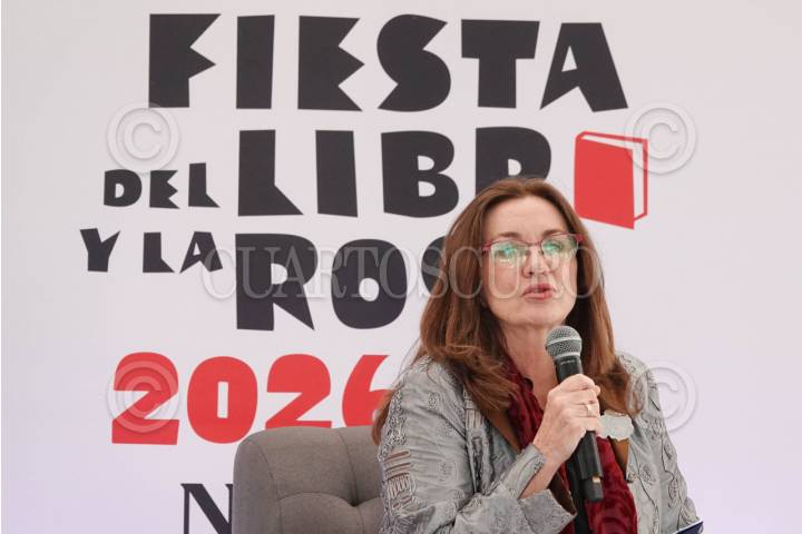 CIUDAD DE MÉXICO, 23ABRIL2026.- Rosa Beltrán durante la inauguración de la Feria del Libro y la Rosa en el Centro Cultural Universitario. FOTO: CAMILA AYALA BENABIB / CUARTOSCURO.COM