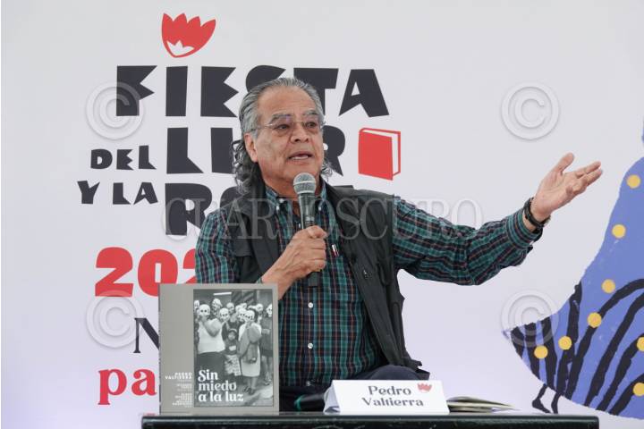 CIUDAD DE MÉXICO, 23ABRIL2026.- Pedro Valtierra durante el conversatorio del libro “Sin miedo a la luz”, como parte de las actividades de la Fiesta del Libro y la Rosa en el Centro Cultural Universitario. FOTO: CAMILA AYALA BENABIB / CUARTOSCURO.COM