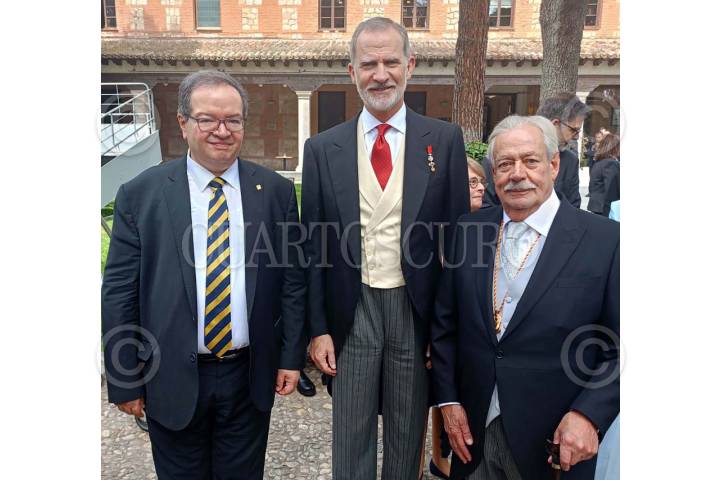 MADRID, ESPAÑA, 23ABRIL2026.- El escritor mexicano Gonzalo Celorio recibió el Premio de literatura en Lengua Castellana “Miguel Cervantes” 2025, por parte del Rey de España, Felipe VI, y su esposa la Reina Leticia, la ceremonia se llevó a cabo en el Paraninfo de la Universidad de Alcalá, en España. En el marco de la ceremonia, el autor evocó, con emoción, su vínculo con la UNAM y se definió como “universitario de todo corazón”; por su parte, el rector Leonardo Lomelí Vanegas señaló que se trata de un reconocimiento a un gran escritor mexicano, a las migraciones, a la riqueza de la lengua española y a la universidad pública. El premio fue entregado en la ceremonia tradicional del 23 de abril, encabezada por los Reyes de España. Durante la entrevista realizada luego de la entrega del premio, Celorio recordó la emoción que sintió al llegar por primera vez a Ciudad Universitaria después de presentar su examen de admisión. Mencionó en particular la impresión que le causó la Biblioteca Central, que vio como una imagen de la propia Universidad: “muchas piedras de colores distintos que forman una gran unidad”. Añadió que esa diversidad “ha alimentado mi espíritu durante toda mi vida”. FOTO: UNAM/CUARTOSCURO.COM