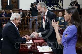 MADRID, ESPAÑA, 23ABRIL2026.- El escritor mexicano Gonzalo Celorio recibió el Premio de literatura en Lengua Castellana “Miguel Cervantes” 2025, por parte del Rey de España, Felipe VI, y su esposa la Reina Leticia, la ceremonia se llevó a cabo en el Paraninfo de la Universidad de Alcalá, en España. En el marco de la ceremonia, el autor evocó, con emoción, su vínculo con la UNAM y se definió como “universitario de todo corazón”; por su parte, el rector Leonardo Lomelí Vanegas señaló que se trata de un reconocimiento a un gran escritor mexicano, a las migraciones, a la riqueza de la lengua española y a la universidad pública. El premio fue entregado en la ceremonia tradicional del 23 de abril, encabezada por los Reyes de España. Durante la entrevista realizada luego de la entrega del premio, Celorio recordó la emoción que sintió al llegar por primera vez a Ciudad Universitaria después de presentar su examen de admisión. Mencionó en particular la impresión que le causó la Biblioteca Central, que vio como una imagen de la propia Universidad: “muchas piedras de colores distintos que forman una gran unidad”. Añadió que esa diversidad “ha alimentado mi espíritu durante toda mi vida”. FOTO: UNAM/CUARTOSCURO.COM
