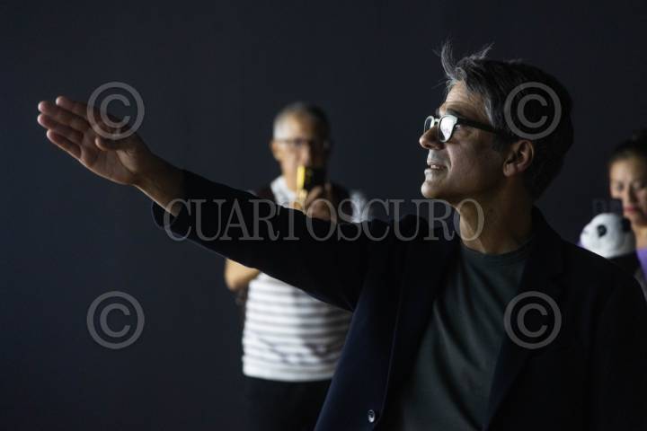 CIUDAD DE MÉXICO, 23ABRIL2026.- En el Museo Fran Mayer se realizó la presentación de la exposición “Oficios de la tinta: Ali Kazma”, la cual estará en el recinto del 24 de abril al 30 de 2026. El artista turco encabezó un recorrido en las tres salas de la muestra, dos de ellas recién remodeladas. El visitante podrá observar los procesos creativos de la escritura mediante la metáfora de la pintura de paisajes, además de piezas audiovisuales de la muestra, en las que destacan figuras como el escritor y erudito Alberto Mangel y de Orhan Pamuk, escritor turco y Premio Nobel de Literatura. FOTO: MOISÉS PABLO/CUARTOSCURO.COM