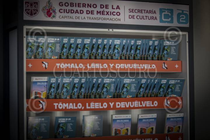 CIUDAD DE MÉXICO, 23ABRIL2026.- Clara Brugada, jefa de Gobierno de la Ciudad encabezo el arranque de la repartición de libros en el Cablebús que recorre la alcaldía de Iztapalapa. Este programa tiene el fin de que mientras los usuarios toman el cablebus puedan leer una lectura corta y regresarla al terminar su recorrido, esto como parte del marco del día del libro. FOTO: ANDREA MURCIA /CUARTOSCURO.COM