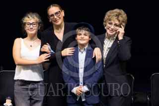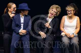 CIUDAD DE MÉXICO, 23ABRIL2026.- Angélica Vale y Angelica María acompañadas de Angélica Masiel y Daniel Nicolás asistieron como madrinas al musical El Fantasma de la Opera, en su celebración por más de 125 mil espectadores, en el Teatro de Los Insurgentes. FOTO: EDGAR NEGRETE LIRA/CUARTOSCURO.COM