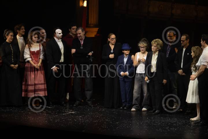 CIUDAD DE MÉXICO, 23ABRIL2026.- Angélica Vale y Angelica María acompañadas de Angélica Masiel y Daniel Nicolás asistieron como madrinas al musical El Fantasma de la Opera, en su celebración por más de 125 mil espectadores, en el Teatro de Los Insurgentes. FOTO: EDGAR NEGRETE LIRA/CUARTOSCURO.COM