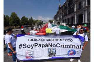 TOLUCA, ESTADO DE MÉXICO, 24ABRIL2026.- Colectivos y padres de familia se manifestaron en Toluca como parte del Movimiento Nacional Soy Papá No Criminal. Denunciaron los obstáculos legales que les impiden estar presentes en la vida de sus hijos y exigieron igualdad de condiciones para una convivencia sana. También denunciaron la violencia institucional y los procesos legales excesivamente largos. FOTO: CRISANTA ESPINOSA AGUILAR/CUARTOSCURO.COM