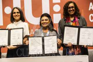 CIUDAD DE MÉXICO, 24ABRIL2026.- Firma de Convenio Internacional de cine de la ciudad de México. Nahui presentación del anuario estadístico Cfilma 2025., en el Palacio del Ayuntamiento. FOTO: VICTORIA VALTIERRA/CUARTOSCURO.COM
