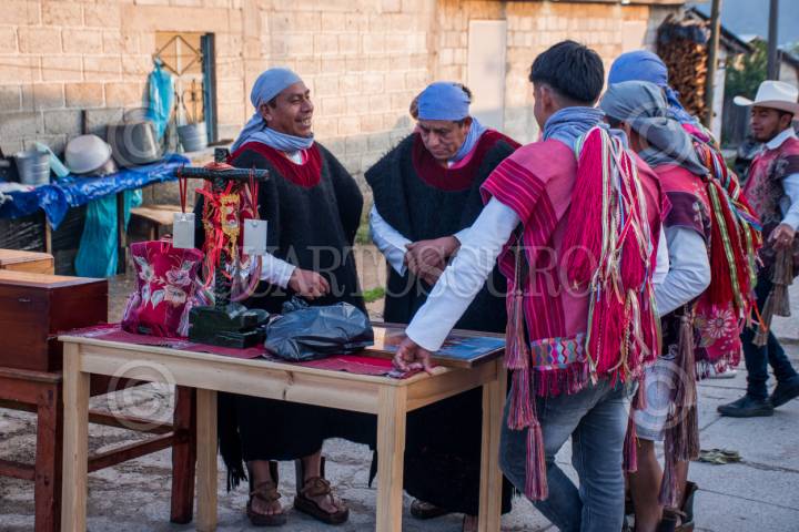 ZINACANTÁN, CHIAPAS, 24ABRIL2026.- En la cabecera municipal se llevó a cabo el solemne cambio de mayordomía, un acto de relevancia en la organización religiosa y comunitaria del pueblo tzotzil. Este ritual marca la transferencia de responsabilidades sagradas, donde los nuevos mayordomos asumen el compromiso de custodiar a los santos patronos y coordinar las festividades anuales del municipio. La ceremonia se distinguió por el uso de la indumentaria característica del Zinacantán contemporáneo: prendas de colores vibrantes, adornadas con los emblemáticos bordados de flores que hoy definen la identidad visual de la región. El evento, desarrollado entre el aroma del incienso y la música de viento, reafirma la estructura social de la comunidad, donde el servicio a los santos es considerado el honor más alto y un pilar fundamental para la preservación de su autonomía cultural. FOTO: ISABEL MATEOS HINOJOSA /CUARTOSCURO.COM