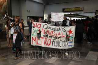 CIUDAD DE MÉXICO, 24ABRIL2026.- Estudiantes de la Universidad Nacional Autónoma de México permitieron el libre paso de usuarias y usuarios en la estación Universidad del Sistema de Transporte Colectivo (STC) Metro, a modo de protesta por las constantes fallas, accidentes y tragedias que han afectado al mayor medio de transporte de la zona conurbada. Exigen a las autoridades reparaciones eficientes y una ampliación que beneficie a la ciudad y no sólo a los turistas que llegarán por el mundial próximo. FOTO: GALO CAÑAS/CUARTOSCURO.COM