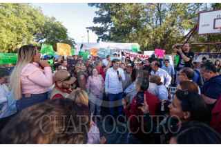 CULIACÁN, SINALOA, 24ABRIL2026.- Una asamblea informativa encabezado por la Senadora Imelda Castro y por el senador Gerardo Fernández Noroña en el parque La Alameda terminó en tensión y desorden tras la irrupción de más de 50 integrantes del colectivo “Guerreros Azules”, liderados por Yesenia Rojo Carrizosa. Los manifestantes, que llegaron desde colonias populares, lanzaron consignas contra el legislador, a quien acusaron de “misógino” y “rata”, mientras se registraban empujones y amenazas. El acto político fue cancelado de manera anticipada, y Noroña permaneció resguardado por simpatizantes que formaron un cerco para evitar el contacto directo con los inconformes, cerrando la jornada con un llamado a la unidad. FOTO: JOSÉ BETANZOS ZARATE/CUARTOSCURO.COM