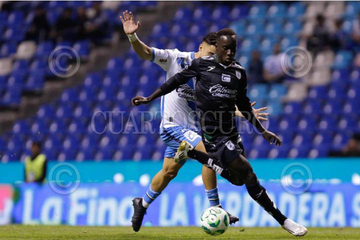 PUEBLA, PUEBLA, 24ABRIL2026.- Nicolás Díaz y Jean Unjanque durante el partido entre el Club Puebla y los Gallos Blancos del Querétaro, correspondiente a la jornada 17 del torneo Clausura 2026 de la Liga BBVA MX, celebrado en el estadio Cuauhtémoc. FOTO: MIREYA NOVO/ CUARTOSCURO.COM