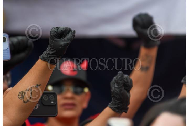 TOLUCA, ESTADO DE MÉXICO, 25ABRIL2026.- Seguidores de los Diablos del Toluca se reunieron en las inmediaciones del estadio Nemesio Diez en apoyo al jugador Helio Nunes conocido como Helinho, manifestando su rechazo al racismo portando un guante negro, esto después de los ataques racistas por parte de algunos aficionados. FOTO: CRISANTA ESPINOSA AGUILAR/CUARTOSCURO.COM