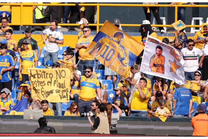 SAN NICOLÁS DE LOS GARZA, NUEVO LEÓN, 25ABRIL2026.- Aficiónalos de los Tigres, apoyan a Gignac en uno de sus últimos juegos, en el encuentro ante Mazatlán, partido correspondiente a la jornada 17 de la Clausura 2026 d ella Liga Mx. Marcador Final: Tigres: 5 - Mazatlán: 1. FOTO: GABRIELA PÉREZ MONTIEL / CUARTOSCURO.COM