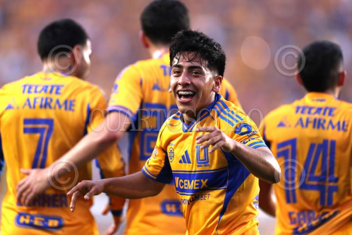 SAN NICOLÁS DE LOS GARZA, NUEVO LEÓN, 25ABRIL2026.- Diego Sánchez de los Tigres, festeja el gol ante el Mazatlán, partido correspondiente a la jornada 17 de la Clausura 2026 d ella Liga Mx. Marcador Final: Tigres: 5 - Mazatlán: 1. FOTO: GABRIELA PÉREZ MONTIEL / CUARTOSCURO.COM