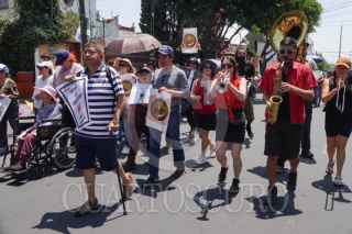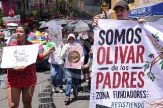 CIUDAD DE MÉXICO, 26ABRIL2026.- La zona fundadora de la colonia Olivar de los Padres fue cambiada de nombre hace unos años a Lomas de San Ángel Inn, una colonia de mayor plusvalía, sin que los habitantes fueran notificados. Cambio que les ha traído diversas repercusiones, entre ellas un golpe económico, ya que el predial, el agua, luz, entre otros servicios han aumentado más del 50%, además de afectaciones en servicios como la atención médica debido a que el nuevo código postal ya no coincide con el registro de algunas clínicas, entre otras problemáticas. Por ello, el comité de vecinos, junto con habitantes de la colonia, convocaron a una reunión en Transmisiones, esquina Salvatierra, para realizar una protesta pacífica en forma de caravana y exigir que les sea devuelto el nombre original, así como el código postal, pues la colonia, con más de 80 años de historia, fue fundada por abuelos y padres de quienes hoy la habitan, además también participaron en la construcción de sus servicios, escuelas y comunidad. FOTO: CAMILA AYALA BENABIB / CUARTOSCURO.COM