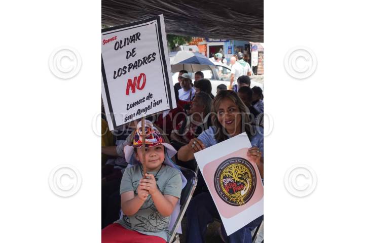 CIUDAD DE MÉXICO, 26ABRIL2026.- La zona fundadora de la colonia Olivar de los Padres fue cambiada de nombre hace unos años a Lomas de San Ángel Inn, una colonia de mayor plusvalía, sin que los habitantes fueran notificados. Cambio que les ha traído diversas repercusiones, entre ellas un golpe económico, ya que el predial, el agua, luz, entre otros servicios han aumentado más del 50%, además de afectaciones en servicios como la atención médica debido a que el nuevo código postal ya no coincide con el registro de algunas clínicas, entre otras problemáticas. Por ello, el comité de vecinos, junto con habitantes de la colonia, convocaron a una reunión en Transmisiones, esquina Salvatierra, para realizar una protesta pacífica en forma de caravana y exigir que les sea devuelto el nombre original, así como el código postal, pues la colonia, con más de 80 años de historia, fue fundada por abuelos y padres de quienes hoy la habitan, además también participaron en la construcción de sus servicios, escuelas y comunidad. FOTO: CAMILA AYALA BENABIB / CUARTOSCURO.COM