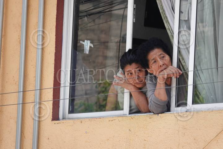 CIUDAD DE MÉXICO, 26ABRIL2026.- Vecinas de la colonia observan desde la ventana de sus viviendas el paso de la caravana de protesta organizada por vecinos de Olivar de los Padres que realizaron un recorrido por la zona a la que le fue cambiado el nombre, en demanda de la restitución de su identidad original. FOTO: CAMILA AYALA BENABIB / CUARTOSCURO.COM