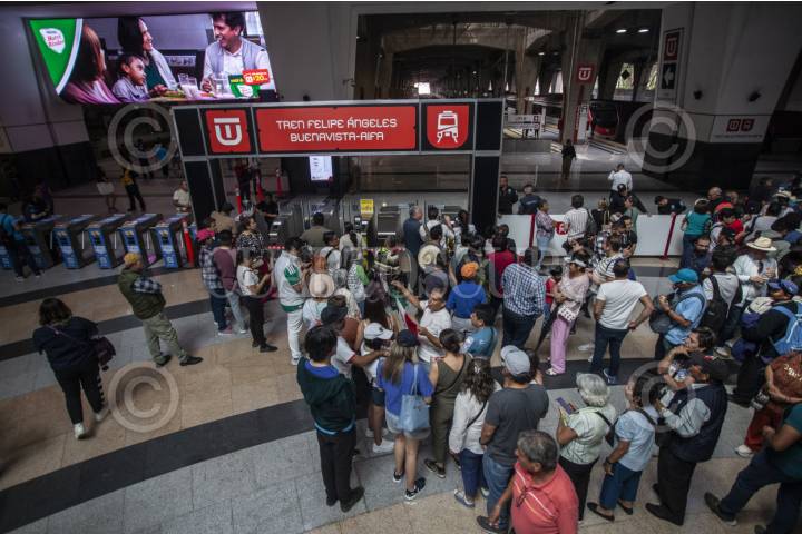 CIUDAD DE MÉXICO, 26ABRIL2026.- Capitalinos esperan en la estación Buenavista pata poder usar el tren Felipe Ángeles Buenavista -AIFA luego de que se inaugurara el día de hoy. FOTO: ANDREA MURCIA /CUARTOSCURO.COM