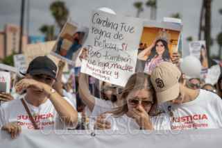 ENSENADA, BAJA CALIFORNIA 25ABRIL2026.- Ensenadenses vestidos de blanco la tarde del sábado para exigir justicia por el asesinato de Carolina Flores, ex reina de belleza originaria del puerto, ocurrido el pasado 15 de abril en la Ciudad de México. Familiares, amigos y ciudadanos demandaron el esclarecimiento del caso y la captura de la presunta responsable, identificada como su suegra, quien permanece prófuga, mientras recordaron a Carolina como una joven querida, noble y llena de sueños cuya muerte ha causado profunda indignación en la comunidad. FOTOS: OMAR MARTÍNEZ / CUARTOSCURO.COM
