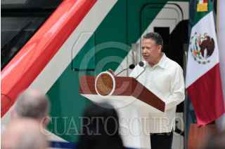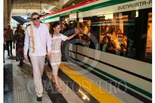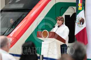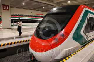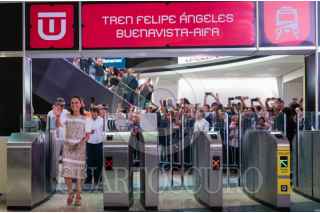 CIUDAD DE MÉXICO, 26ABRIL2026.- Claudia Sheinbaum Pardo, presidenta de México, encabezó la inauguración del Tren Felipe Ángeles Buenavista-AIFA. Con esta transporte los usuarios del Aeropuerto Internacional Felipe Ángeles harán 60 minutos de la estación Buenavista y tendrá un costo de 45 pesos, aunque esta tarifa solo es promocional por la inauguración de operaciones. FOTO: PRESIDENCIA/CUARTOSCURO.COM