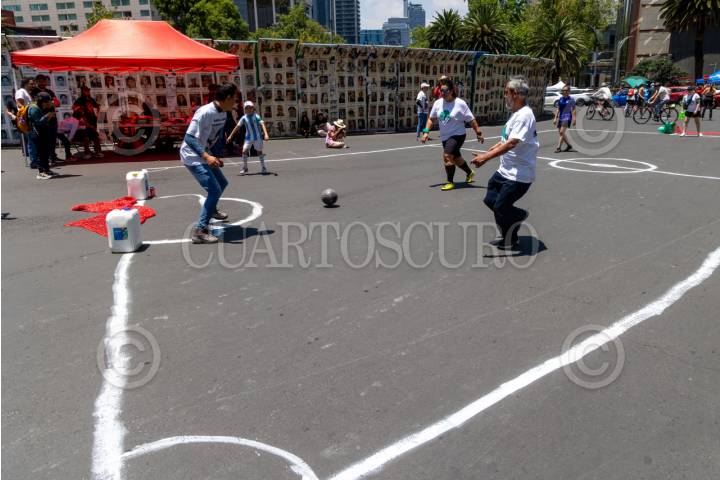 CIUDAD DE MÉXICO, 26ABRIL2026.- Integrantes de la Red por los Derechos de la Infancia (Redim) jugaron una cascarita por los niños y niñas desaparecidos en la Glorieta de las y los Desaparecidos. Durante su mensaje en el lugar señalaron que tan solo en el 2025 en el país se registraron 1º mil 700 reportes de desapariciones de niñez y adolescentes, principalmente en el Estado de México y Ciudad de México, esto quiere decir que hay 29 desapariciones al día de algún, niño, niña o adolescentes de 0 a 17 años. Loa ahí presentes señalaron que con esta actividad buscan visibilizar “la indolencia” de las autoridades de los tres niveles para resolver este problema. FOTO: MOISÉS PABLO/CUARTOSCURO.COM