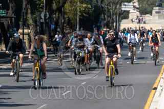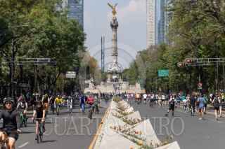 CIUDAD DE MÉXICO, 26ABRIL2026.- Corredores y ciclistas realizan su actividad física alrededor de la Glorieta de las y los Desparecidos. El Paseo Ciclista se realizó hasta las 12:30 debido a la contingencia ambiental. FOTO: MOISÉS PABLO/CUARTOSCURO.COM