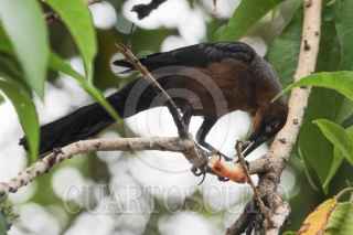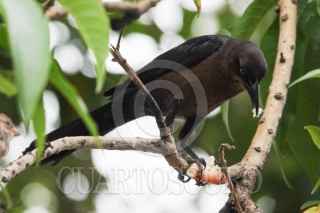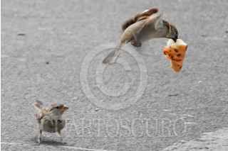 CIUDAD DE MÉXICO, 26ABRIL2026.- Un zanate mexicano toma un pedazo de pan de pizza abandonado en la Glorieta de los Insurgentes y se alimenta de él. FOTO: CAMILA AYALA BENABIB / CUARTOSCURO.COM