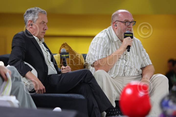 CIUDAD DE MÉXICO, 26ABRIL2026.- Los actores Jhon Ross Bowie y Brian Posehn protagonistas de la serie "Stuart Fails to Save the Universe", se presentaron en el Omelett Stage como parte de las actividades de la CCXPMX en su tercer día. FOTO: EDGAR NEGRETE LIRA/CUARTOSCURO.COM