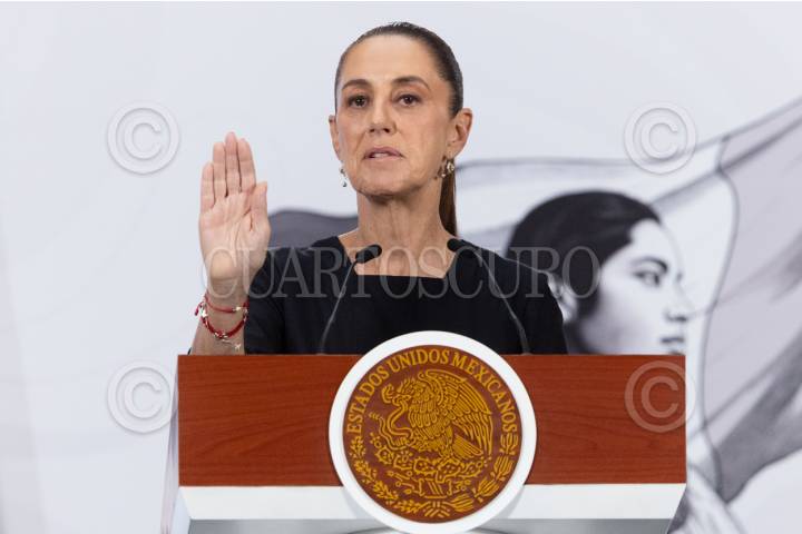 CIUDAD DE MÉXICO, 27ABRIL2026.- Claudia Sheinbaum Pardo, Presidenta de México; Édgar Amador Zamora, secretario de Hacienda y Crédito Público, y Emilio Romano Mussali, presidente de la Asociación de Bancos de México, encabezaron la firma del acuerdo entre el Gobierno Federal y la ABM para reducir las comisiones en pagos digitales de los combustibles con el objetivo de que se reduzcan sus precios y se beneficie al consumidor, esto durante la Mañanera del Pueblo. FOTO: MOISÉS PABLO/CUARTOSCURO.COM
