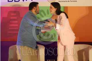 ACAPULCO, GUERRERO, 27ABRIL2026.- Josefina Rodríguez Zamora, secretaria de Turismo y el titular del FONATUR, Sebastián Ramírez, durante el foro Financiamiento e Inversión en el Sector Turístico en México, previo a la inauguración de la edición número 50 del Tianguis Turístico. FOTO: DANIEL AUGUSTO/ CUARTOSCURO.COM
