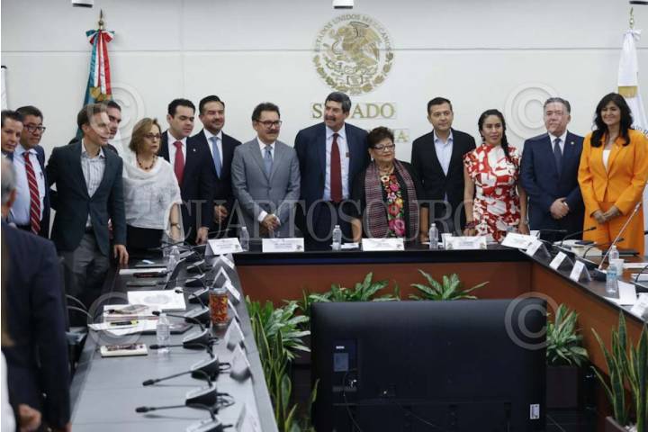 CIUDAD DE MÉXICO, 27ABRIL2026.- Los senadores Ignacio Mier y Javier Corral junto con senadores durante la Reunión de la Comisión de Justicia en el Senado de la República con la Fiscal Ernestina Godoy para la presentación y discusión del Plan Estratégico en materia de Justicia 2026-2030. FOTO: GRACIELA LÓPEZ/CUARTOSCURO.COM