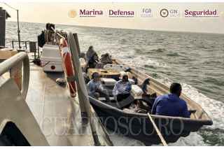 PUERTO , CHIAPAS, MÉXICO. 27ABRIL2026.- En Chiapas, en una operación marítima encabezada por elementos de la Secretaría de Marina (Semar), a través de la Armada de México en funciones de Guardia Costera, en coordinación con la Secretaría de Seguridad y Protección Ciudadana (SSPC) y Fiscalía General de la República (FGR), aproximadamente a 65 millas (120 km) al noroeste de Puerto Chiapas, se interceptó y aseguró una embarcación menor, se detuvo a seis personas de nacionalidad extranjera, que transportaban 18 bultos con presunta droga.Durante la inspección al interior de la embarcación se localizaron 18 bultos con un peso estimado de 904 kilos de cocaína, además se detuvo a los seis tripulantes de nacionalidad extranjera. FOTO: SSPC/CUARTOSCURO.COM
