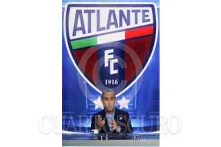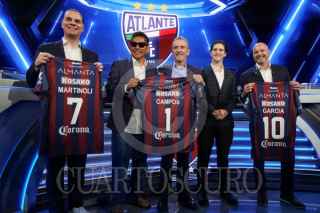 CIUDAD DE MÉXICO, 27ABRIL2026.- Conferencia de prensa en TV Azteca donde se anunció que el Club de Fútbol Atlante regresará oficialmente a la Liga MX en el torneo Apertura 2026. Estuvieron presentes el presidente Emilio Escalante Méndez y el vicepresidente Emilio Escalante García, quienes hablaron sobre el regreso del equipo junto a los presentadores de TV Azteca, el exfutbolista y comentarista Luis García Postigo, el periodista y comentarista Christian Martinoli, y el exfutbolista y comentarista Jorge Campos. FOTO: CAMILA AYALA BENABIB / CUARTOSCURO.COM