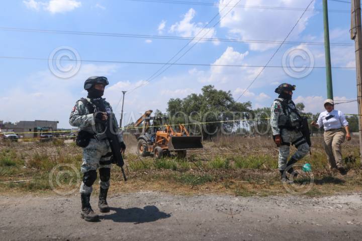 ACOLMAN, ESTADO DE MÉXICO, 27ABRIL2026.- Autoridades federales y estatales aseguraron una toma clandestina de hidrocarburo en los ejidos de Santa Catarina. Personal de Pemex se encuentra trabajando en luchar donde hallaron un túnel de aproximadamente 100 metros de largo que conectaba hasta un ducto de Pemex. Se presume que cuatro personas sin vida se encuentran al interior del túnel, quienes se pudieron intoxicar con los gases, sin embargo, los encargados del operativo no han confirmado este hecho. La zona se encuentra acordonada para evitar peligros a la población. FOTO: AXEL SÁNCHEZ/CUARTOSCURO.COM