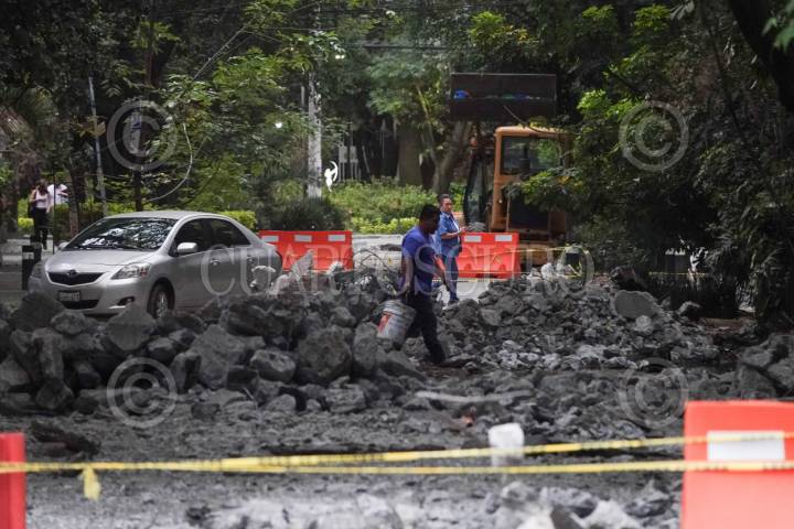 CIUDAD DE MÉXICO, 27ABRIL2026.- Se están realizando trabajos de reencarpetamiento y adecuaciones viales sobre la calle Ozuluama, en la colonia Hipódromo Condesa. Una de las calles que presentaba múltiples baches y pavimento desgastado. FOTO: CAMILA AYALA BENABIB / CUARTOSCURO.COM