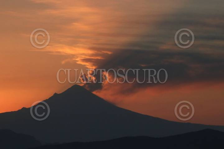 CUERNAVACA, MORELOS, 28ABRIL2026.- La silueta del volcán Popocatépetl es bañada por la luz del amanecer, presenta mucha actividad emitiendo gases, ceniza y vapor de agua. FOTO: MARGARITO PÉREZ RETANA/CUARTOSCURO.COM
