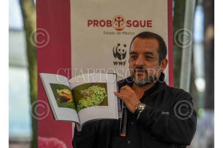 METEPEC, ESTADO DE MÉXICO, 28ABRIL2026.-Leopoldo Islas Flores coordinador del Libro, durante la presentación del libro Anfibios en Ecosistemas Forestales del Estado de México, en el marco del Día Internacional para la Conservación de los Anfibios. FOTO: CRISANTA ESPINOSA AGUILAR/CUARTOSCURO.COM
