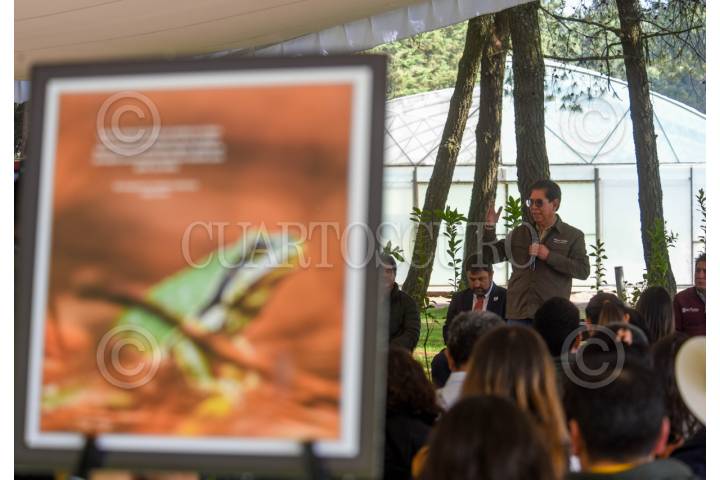 METEPEC, ESTADO DE MÉXICO, 28ABRIL2026.- Alejandro Santiago Sánchez Vélez, director de PROBOSQUE, durante la presentación del libro Anfibios en Ecosistemas Forestales del Estado de México, en el marco del Día Internacional para la Conservación de los Anfibios. FOTO: CRISANTA ESPINOSA AGUILAR/CUARTOSCURO.COM