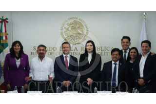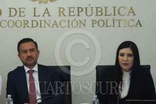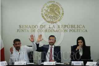 CIUDAD DE MÉXICO, 28ABRIL2026.- El senador Homero Davis Castro, secretario de la Comisión de Hacienda y Crédito Público; Miguel Ángel Yunes, presidente de la Comisión de Hacienda y Crédito Público, y Victoria Rodríguez Ceja, gobernadora del Banco de México, durante su comparecencia ante esta Comisión, en donde rindió su informe de cumplimiento de mandato. FOTO: GRACIELA LÓPEZ/CUARTOSCURO.COM
