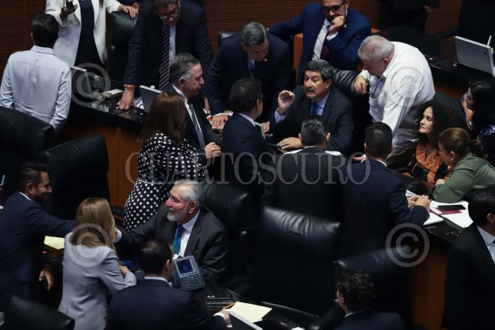 CIUDAD DE MÉXICO, 28ABRIL2026.- Los senadores Javier Corral, Ignacio Mier y Adán Augusto conversaron durante la Sesión Ordinaria en el Senado de la República. FOTO: GRACIELA LÓPEZ/CUARTOSCURO.COM