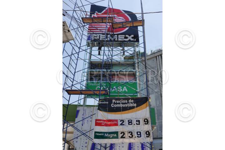 CIUDAD DE MÉXICO, 28ABRIL2026.- Trabajadores realizan obras y modificaciones en la estructura e imagen de una gasolinera Pemex, frente al Parque España. FOTO: CAMILA AYALA BENABIB / CUARTOSCURO.COM