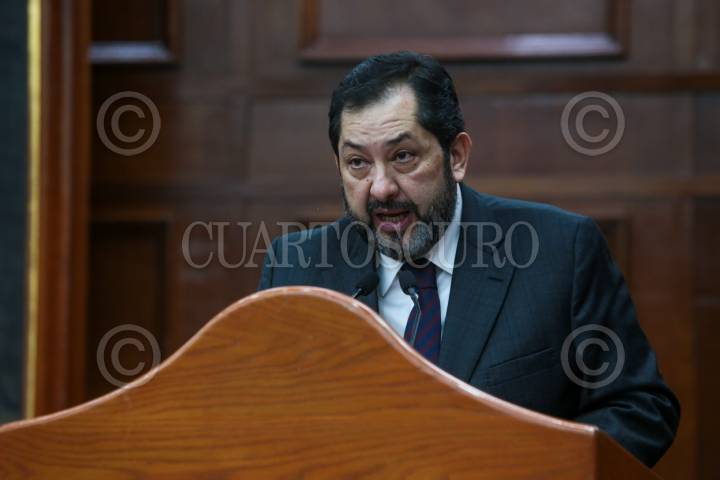 TOLUCA, ESTADO DE MÉXICO, 28ABRIL2026.- Óscar Flores Jiménez, Secretario de Finanzas del Estado de México entregó la Cuenta Pública del Gobierno y Organismos Auxiliares del Estado de México del Ejercicio Fiscal 2025 ante integrantes de la Junta de Coordinación Política de la LXII Legislatura Local. FOTO: CRISANTA ESPINOSA AGUILAR/CUARTOSCURO.COM