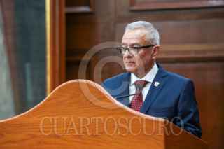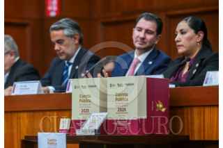 TOLUCA, ESTADO DE MÉXICO, 28ABRIL2026.- Óscar Flores Jiménez, Secretario de Finanzas del Estado de México entregó la Cuenta Pública del Gobierno y Organismos Auxiliares del Estado de México del Ejercicio Fiscal 2025 ante integrantes de la Junta de Coordinación Política de la LXII Legislatura Local. FOTO: CRISANTA ESPINOSA AGUILAR/CUARTOSCURO.COM