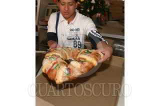 MÉXICO, D.F., 04ENERO2008.- La venta de rosca de reyes se incrementa en las las panificadoras conforme se acerca el festejo de Día de Reyes, según la tradición si la rebanada que te corresponde sale un muñequito te toca hacer los tamales para el Día de la Calendaria. FOTO: MOISÉS PABLO/CUARTOSCURO.COM