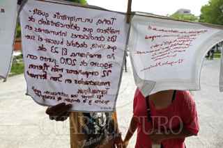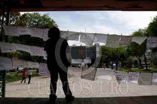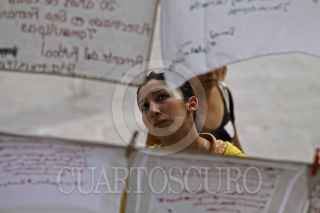 MONTERREY, NUEVO LEÓN, 07ABRIL2013.- Familiares de desaparecidos en el estado se reúnen en la plaza Zaragoza en el centro de la ciudad para mostrar los bordados que realizan por cada persona desaparecida o asesinada en los últimos años, así como seguir con la actividad nombrada Bordando por la Paz y difundirla. FOTO: GABRIELA PÉREZ MONTIEL / CUARTOSCURO.COM