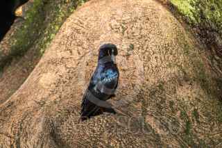 CIUDAD DE MÉXICO, 08SEPTIEMBRE2021.- Una Zanate acicala su negro plumaje bajo los rayos del sol en la base de unos de los centenarios árboles del Bosque de Chapultepec. FOTO: MOISÉS PABLO/CUARTOSCURO.COM